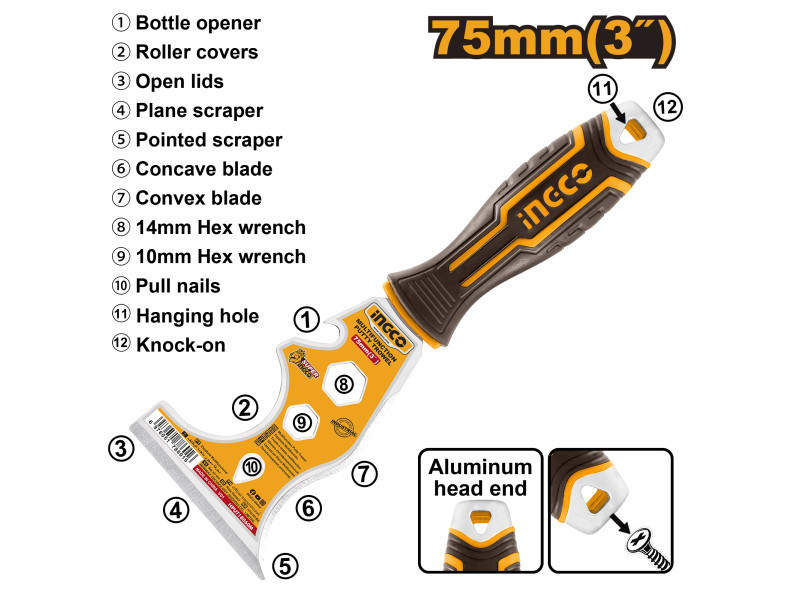 INGCO Multifunkciós spakli, 75 mm, inox, lágy fogantyús